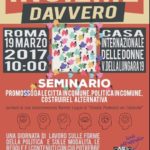 Chiediamo, pertanto, a tutte/i coloro che fin qui hanno condiviso questo nostro percorso, di continuare il cammino cominciando a discutere nel merito, sulle forme della politica e sul modo e le regole con cui concretamente potrebbe avviarsi il percorso unitario che immaginiamo. Pensiamo ad un seminario sulle forme della politica che si terrà il 19 marzo a Roma dalle ore 10:00 alle ore 17:00 presso la Casa Internazionale delle Donne, via delle Lungara 19, che sarà preparato in un primo incontro più ristretto il 5 marzo.