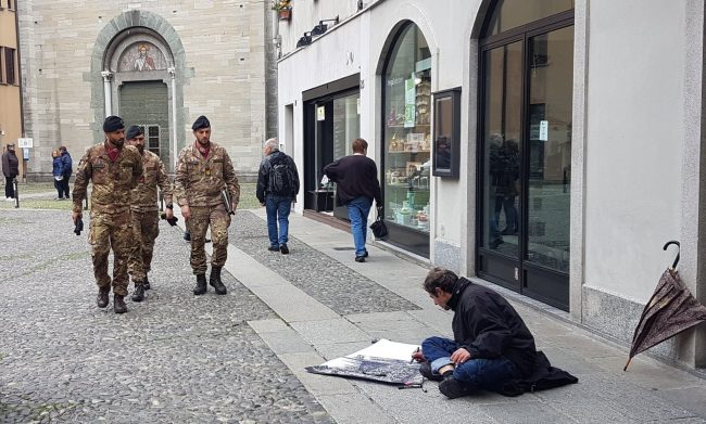 Chi vive a Como però sa perfettamente che gli è andata male e che, nonostante il ripetersi di azioni e delibere totalmente antisociali e provocatorie quali: la chiusura dei bagni pubblici, la rimozione delle panchine di piazza San Rocco, le ordinanze “anti poveri”, la chiusura dell’acqua corrente in piena estate in un luogo dove vivevano 70 persone, le visite quotidiane alle 5:00 del mattino dell’idropulitrice scortata dalla polizia locale sotto il portico di San Francesco dove fino a dicembre scorso dormivano all’adiaccio una cinquantina di persone, lo spegnimento del wi fi nei luoghi e nelle piazze cittadine frequnetate dalle persone migranti, le perquisizioni ed i controlli su base etnica fuori dalla biblioteca comunale e via discorrendo, il problema di ordine pubblico nessuno lo ha mai creato e quindi, a poche settimane dalle elezioni europee, lor signori necessitavano di un’azione simbolica e totalmente non necessaria come quella di mobilitare l’esercito e di portarlo a Como, nella città di frontiera dove ci sono i migranti, quegli stessi migranti che fino a pochi mesi fa avevano un luogo dello Stato dove rifugiarsi, il campo di via Regina che oggi non esiste più per volontà di questi stessi politici che porteranno i militari in città».