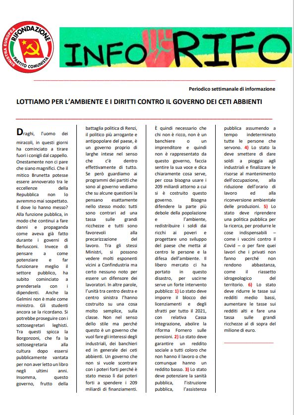 L’editoriale del n°2 del 27 febbraio di #inforifo – il periodico di informazione politica a cura del comitato regionale lombardo di Rifondazione Comunista – a questo link è possibile scaricare la versione integrale in formato pdf